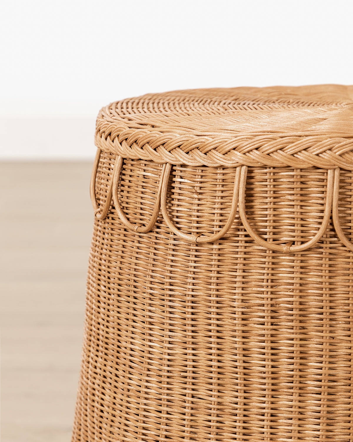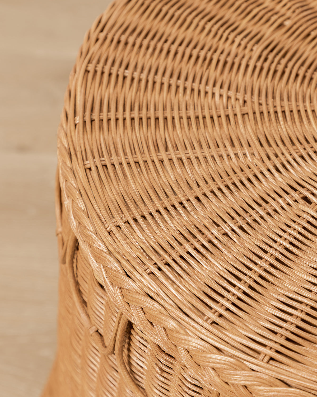 Tissée à la main en rotin naturel teinté caramel, la table d'appoint Adeline de Sharland England allie texture organique et design intemporel. Ses détails festonnés et son tissage complexe créent une silhouette raffinée, idéale pour apporter une touche chaleureuse à n'importe quel espace.