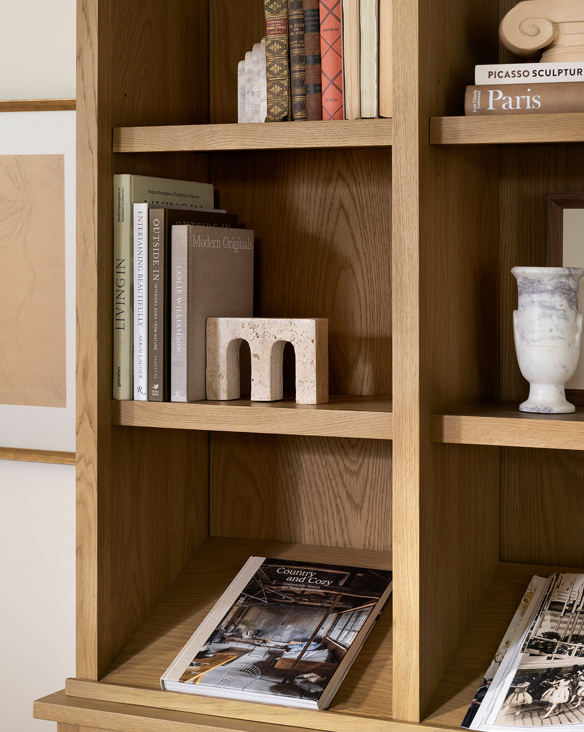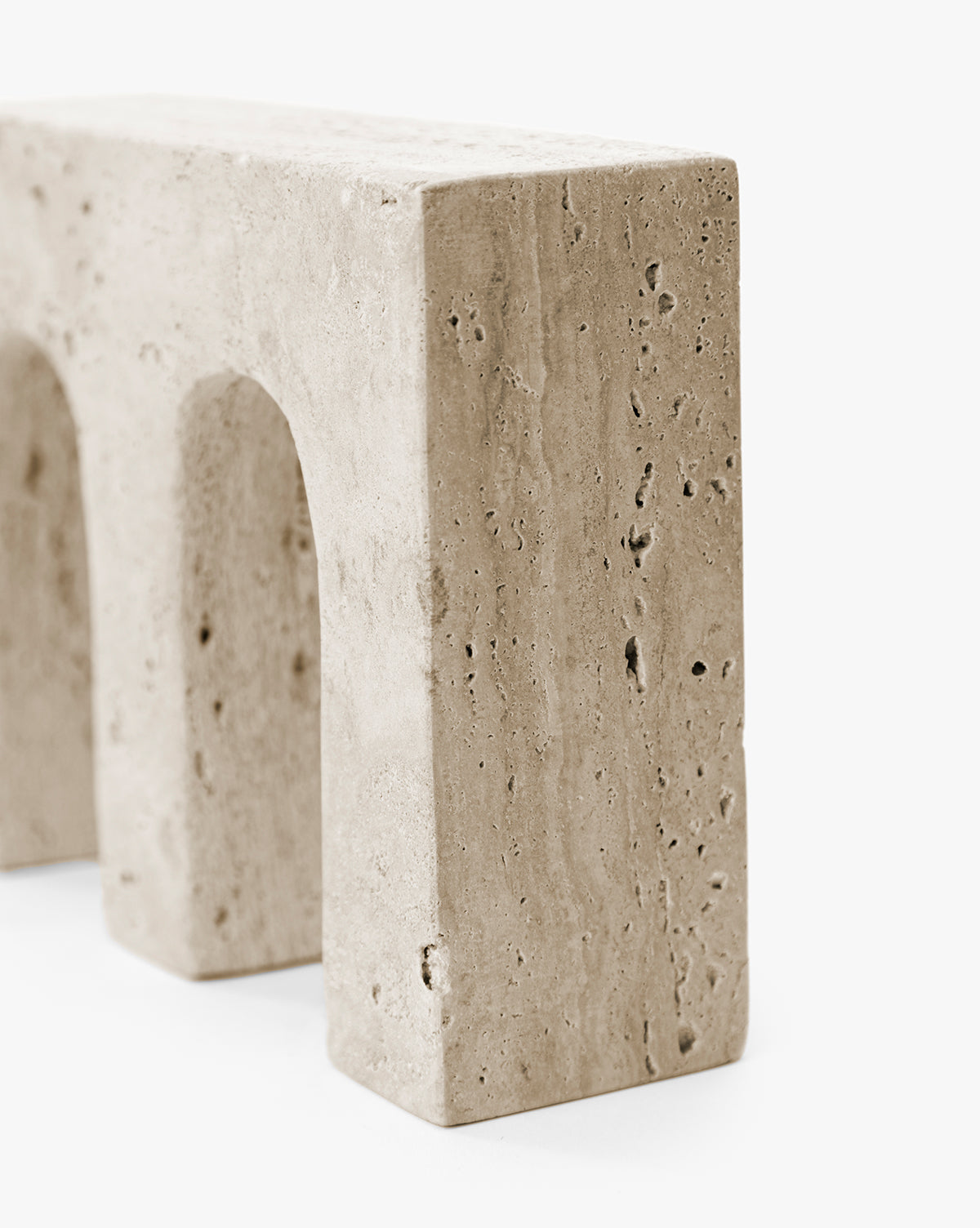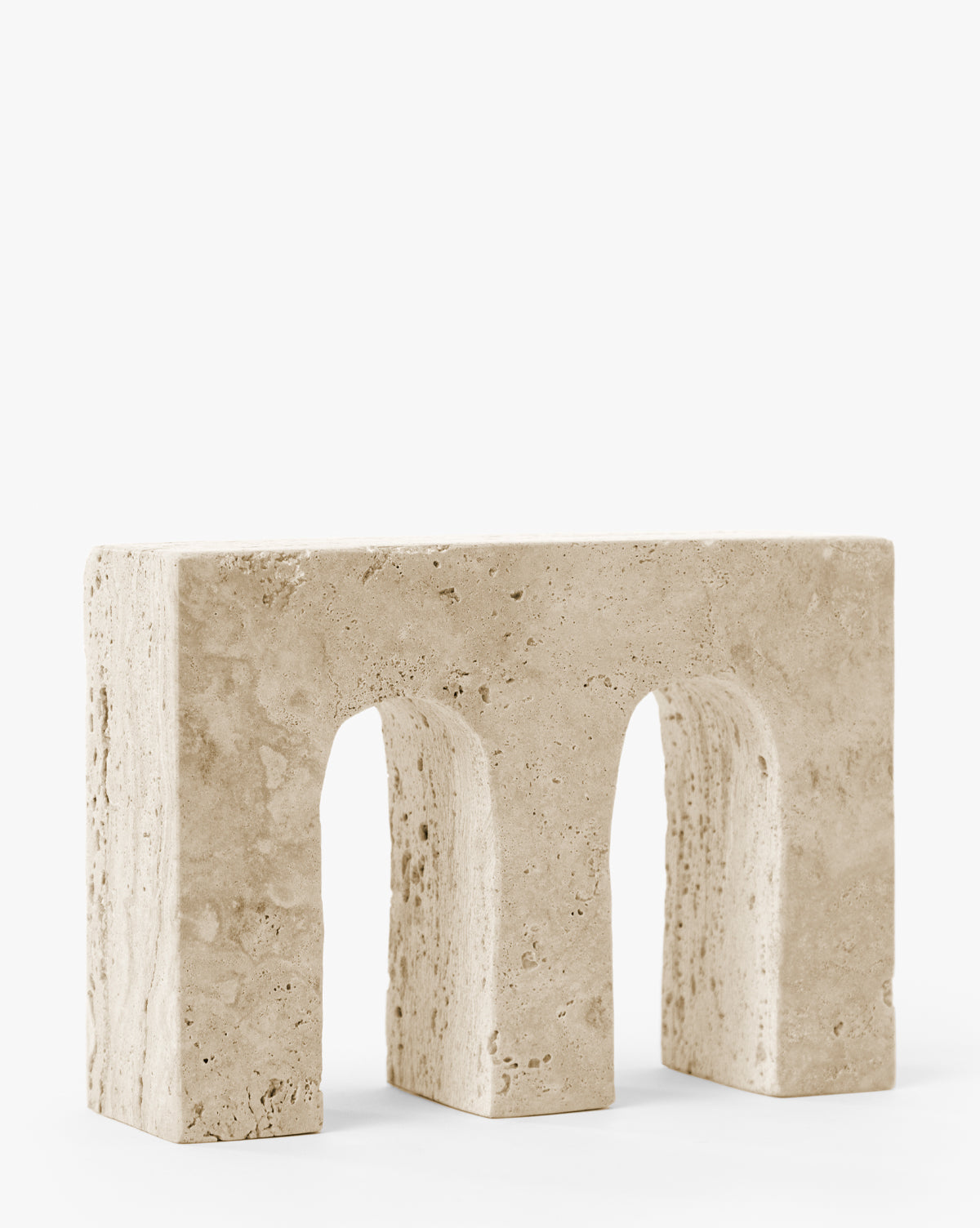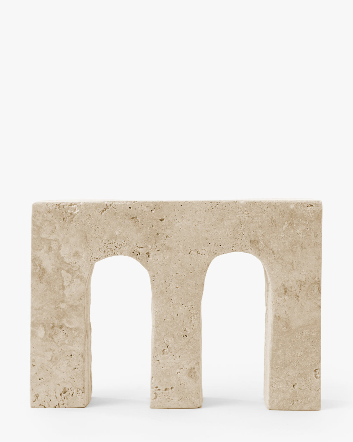 Forme sculpturale en marbre travertin, notre objet Arteron apporte une touche de sophistication à toute console, table basse ou bibliothèque. Ses deux arches lui confèrent une élégance classique, tandis que le veinage naturel du marbre lisse lui confère une allure minimaliste, à la fois raffinée et organique. À la fois élégant et intemporel, il s'intègre à de nombreux styles d'intérieur et embellit vos intérieurs.