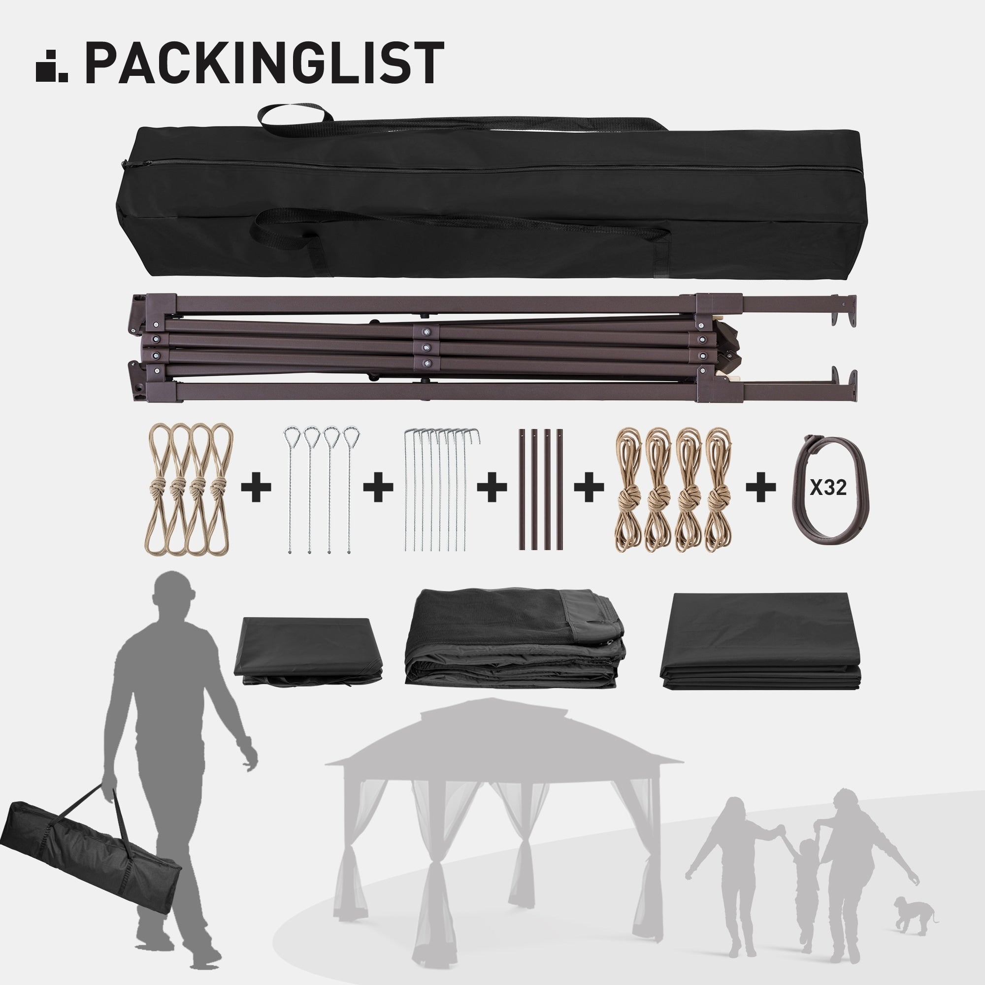 Cozywor 11 ft. x 11 ft. Pop-Up Steel Gazebo with Mosquito Netting