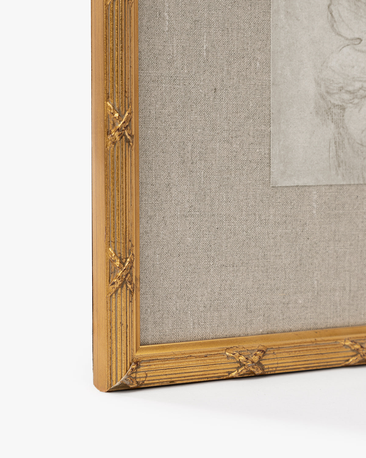Réalisée avec art à partir d'un mélange judicieux de matériaux, Plume Florale est à la fois sophistiquée et pleine de caractère. Cette composition, aux fleurs magnifiquement détaillées, est une giclée sur papier, découpée à la main et montée sur un passe-partout en lin transparent apprêté. Son élégance est sublimée par un cadre doré à la feuille, apportant une chaleur intense aux tons neutres et intemporels de l'œuvre.