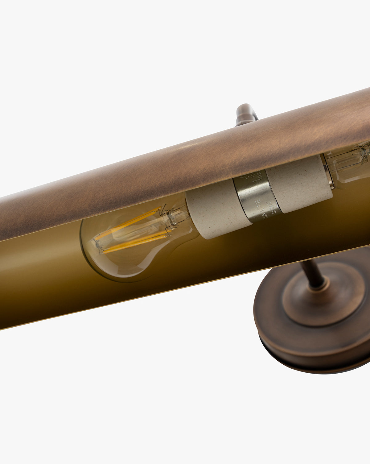 Disponible en bronze bruni ou en laiton antique, l'applique murale Gallery est à la fois sophistiquée et classique. Son abat-jour métallique allongé est relié à une plaque arrière ronde par un élégant bras courbé, apportant une touche vintage à votre espace.