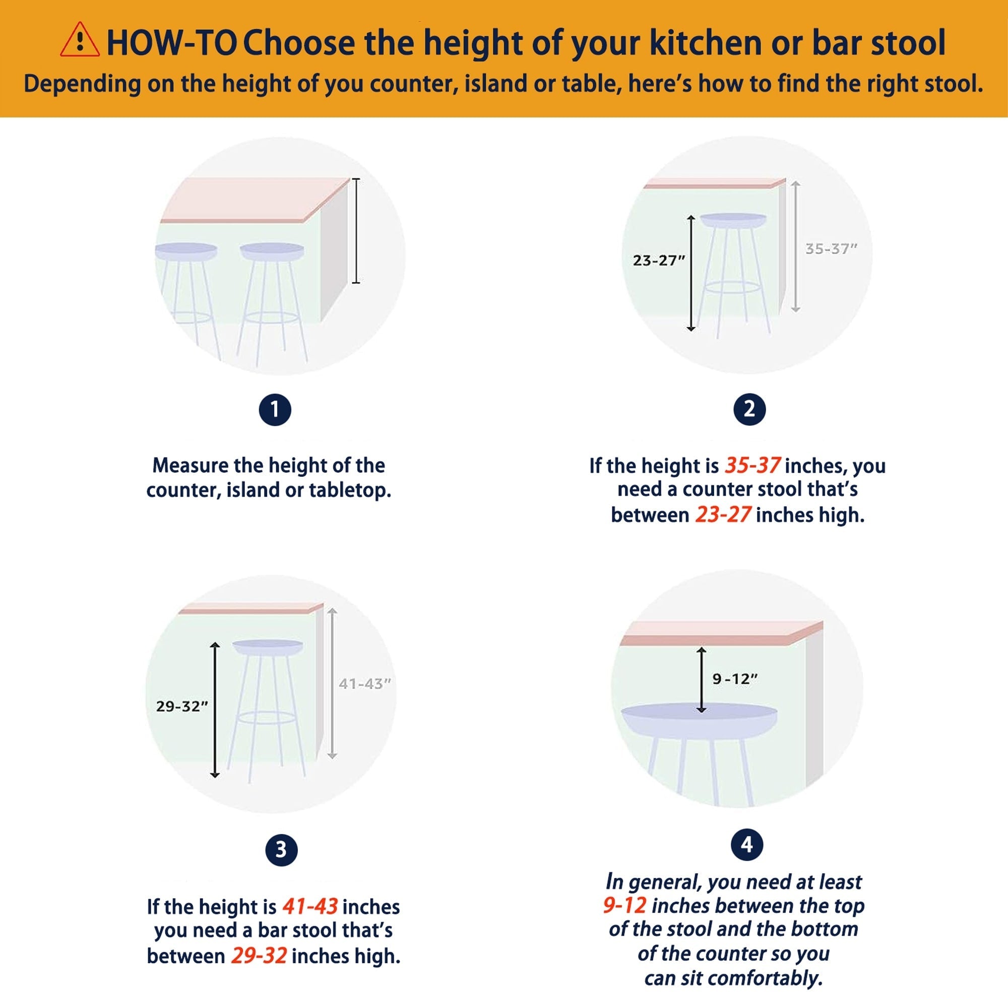 Please measure the height of your counter, island or table top first! Bar Stools fit bar tops 41'- 43' high and Counter Stools fit counter tops 35'- 37' high.