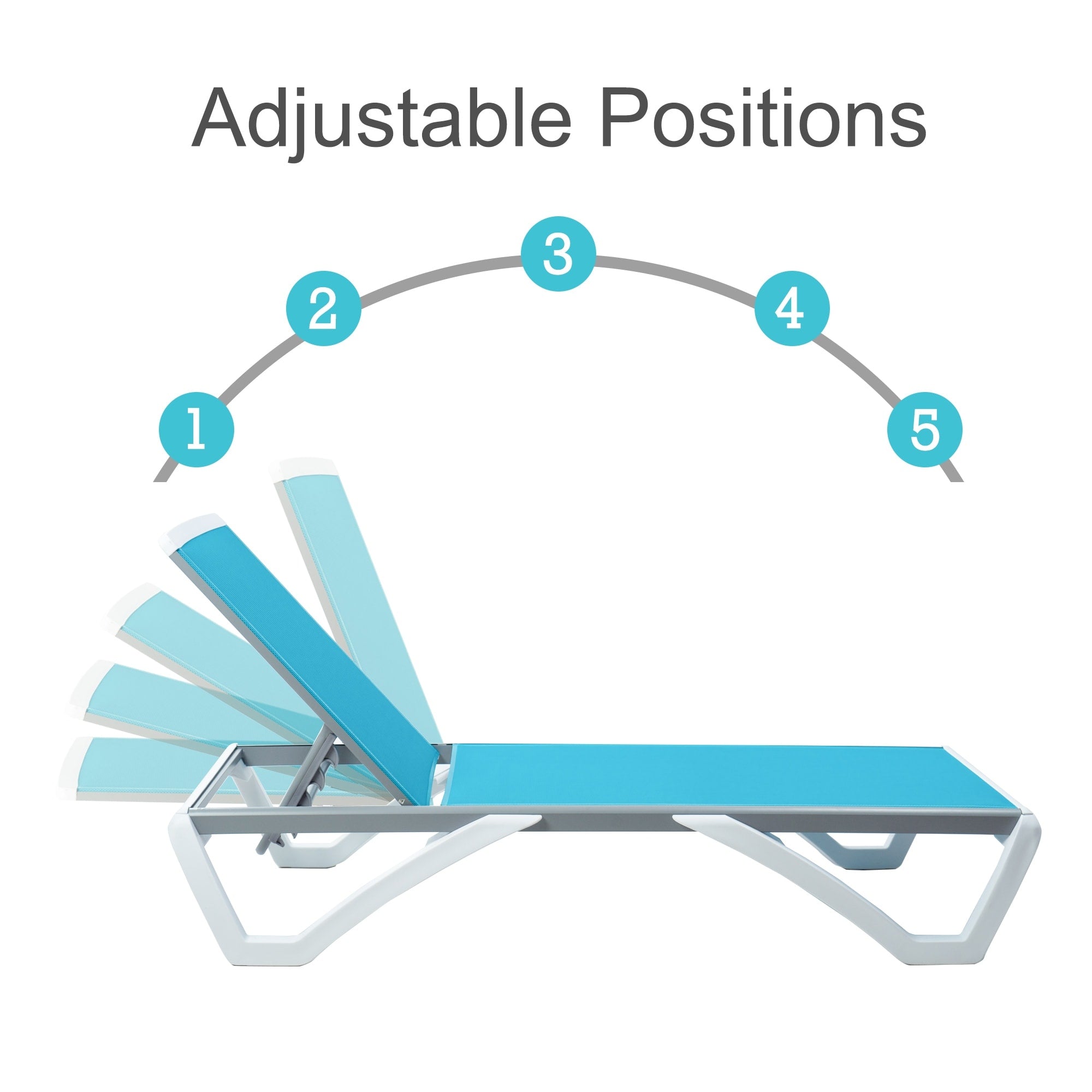 Kozyard Alan Full Flat Aluminum and Polypropylene Resin Legs Patio Reclining Adjustable Chaise Lounge