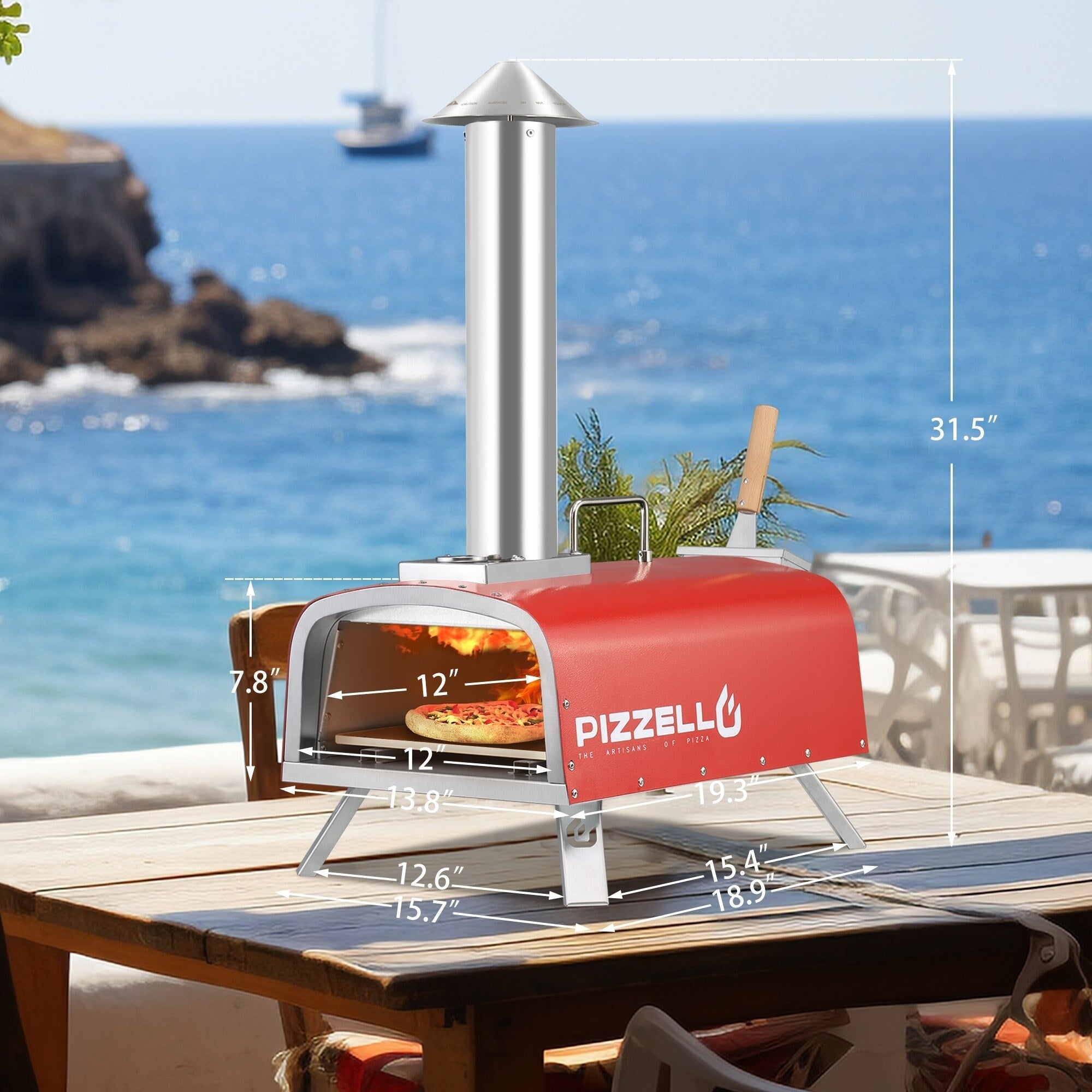 Multi-Fuel Outdoor Pizza Oven Stonebaked Pizza Maker with Gas Burner & Wood Box - 12 inch