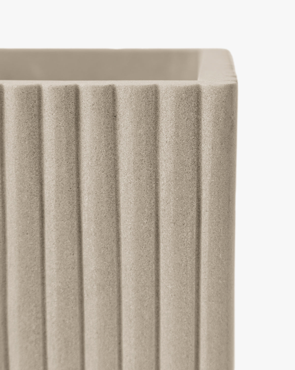 À la fois ludique et imposante, la poubelle Prentiss est fabriquée en grès menthe blanc cassé. Ses parois nervurées et sa forme carrée apportent dimension et praticité à votre salle de bains.