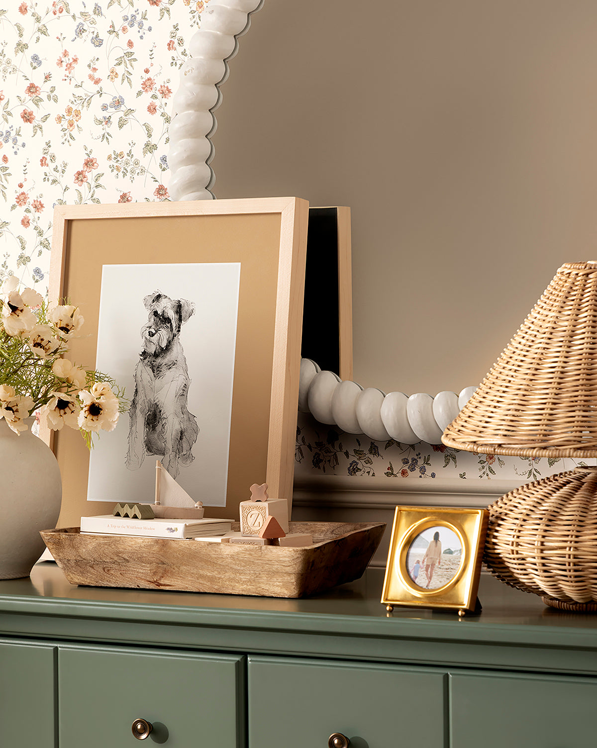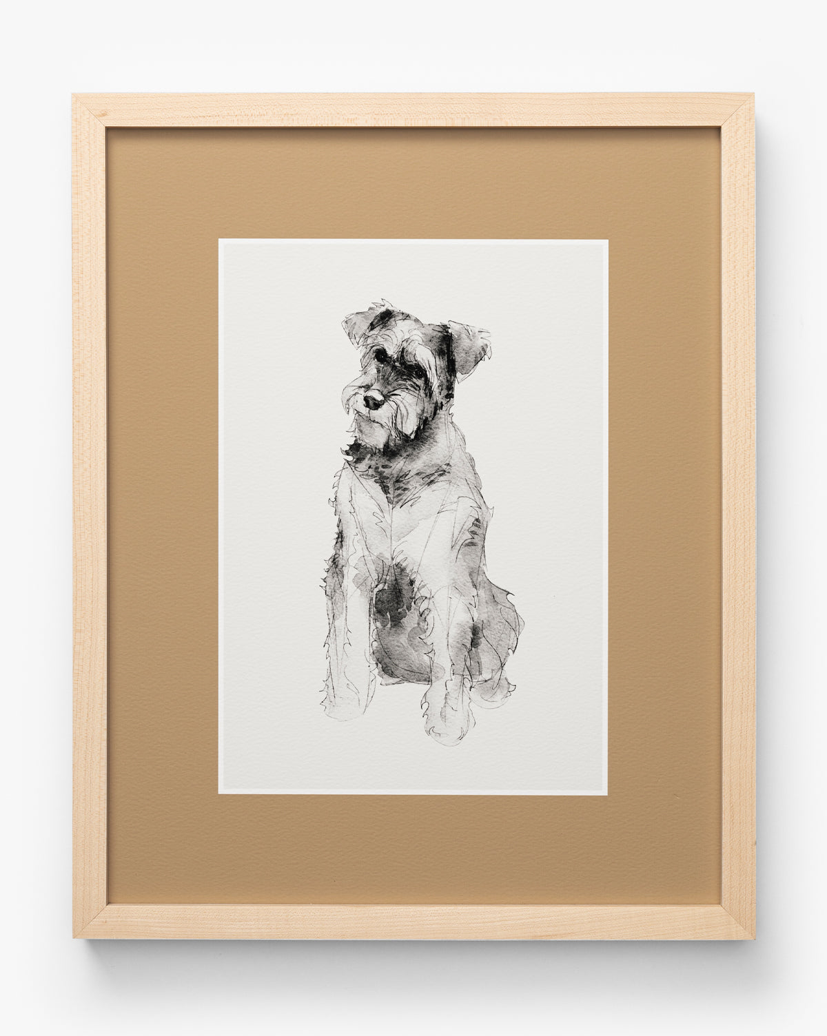 Rex, orné d'une aquarelle représentant un adorable schnauzer, apporte douceur et réconfort à la chambre ou à la salle de jeux de votre enfant. Son cadre en érable naturel et son passe-partout beige lui confèrent chaleur et raffinement. Classique et polyvalent, il s'adapte facilement au fil des ans et des styles.