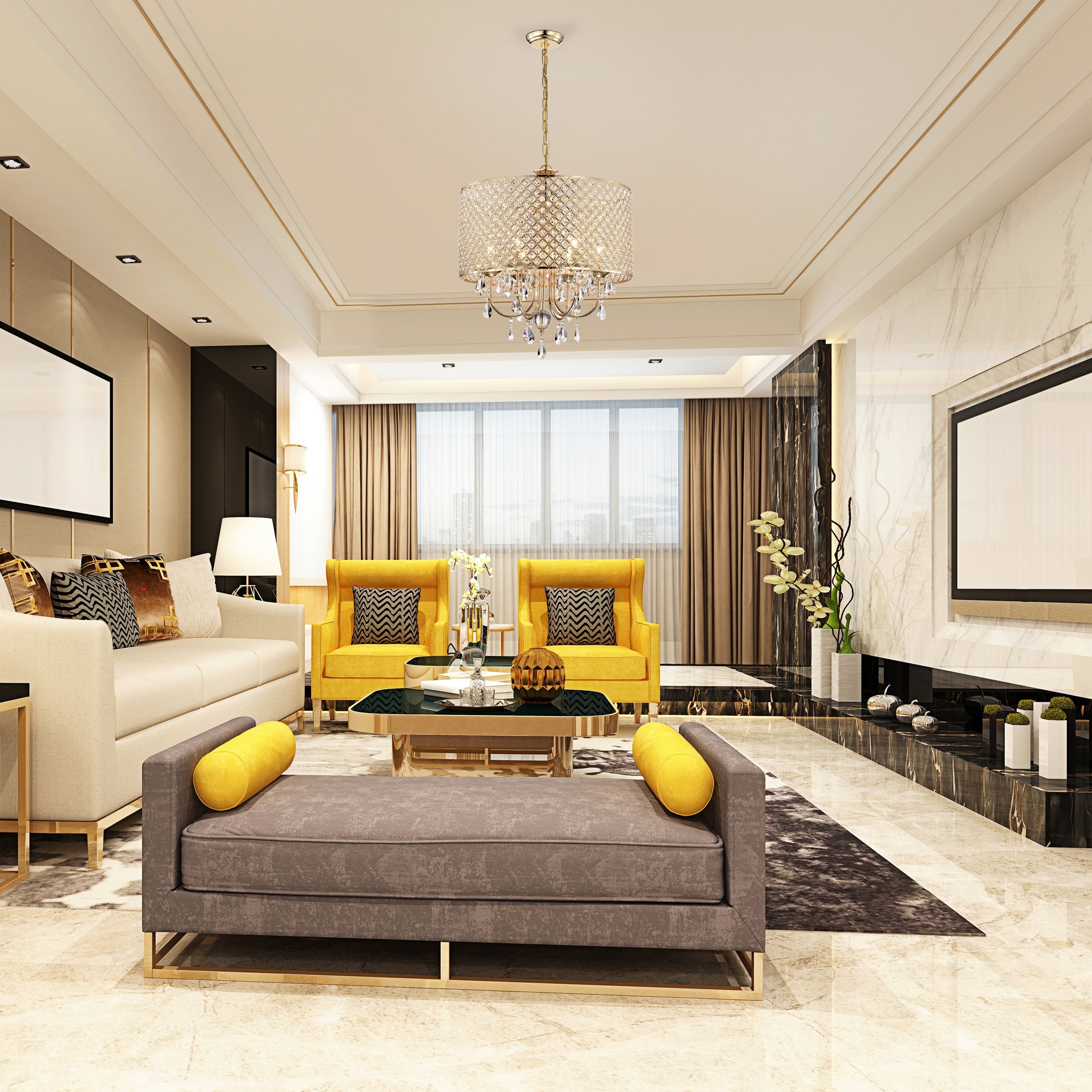 - 6-light chandelier: 22 in. Dia x 24 in. H with crystal hanging, Drum Dimensions: 22 in. Dia x 11 in. H