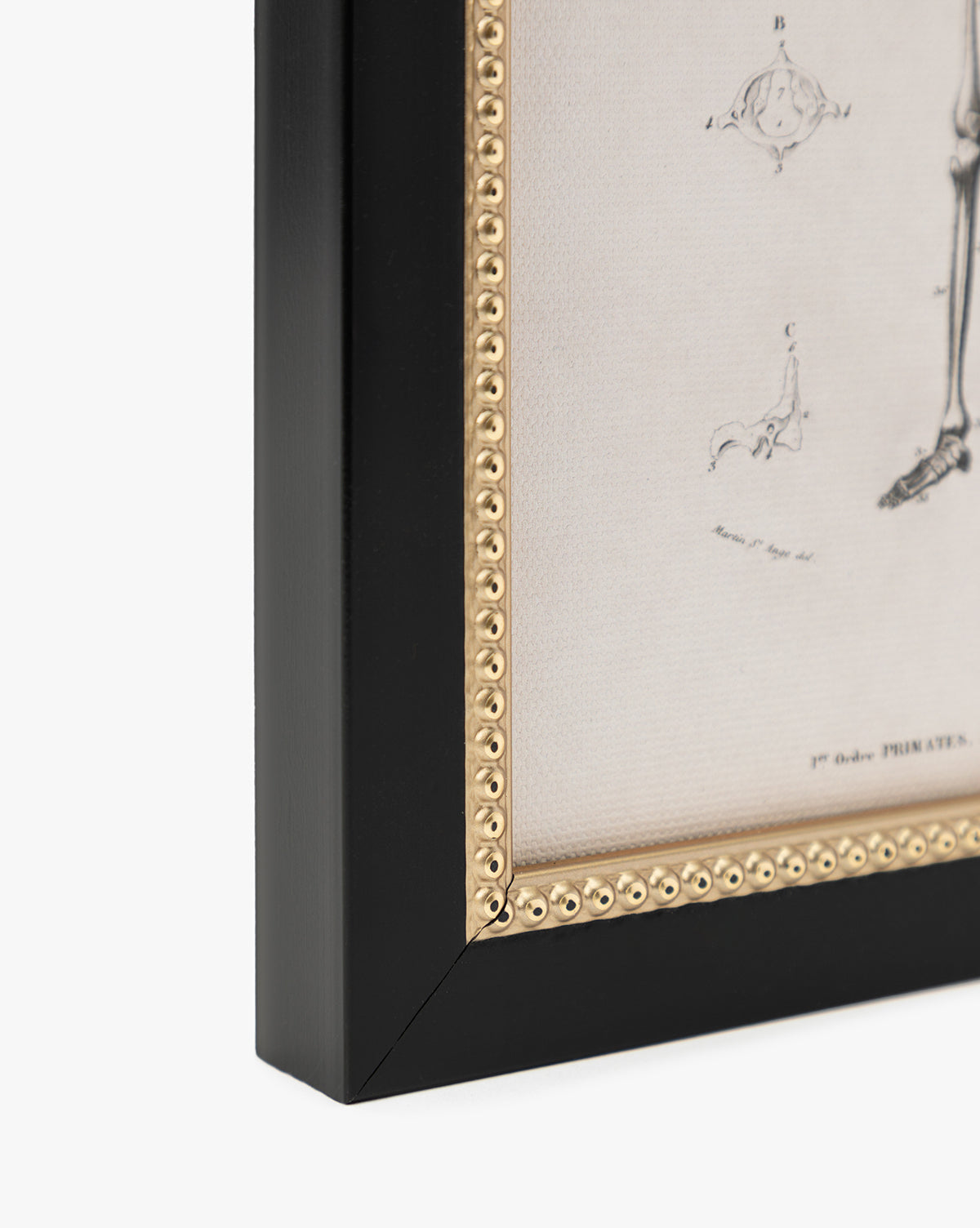 Clin d'œil à l'illustration scientifique vintage, cet imprimé Anatomie Squelette ajoute une touche de charme et d'ambiance à votre style saisonnier. Avec son cadre noir et ses subtiles perles dorées, il est une touche d'étrangeté parfaite pour Halloween ou un cabinet de curiosités bien pensé.