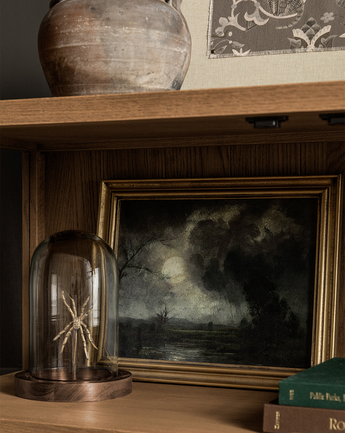 Ambiante et atmosphérique, l'œuvre « Tempête sur le lac » capture un instant fugace du drame de la nature avec une profondeur picturale et un mouvement subtil. Une lune éclatante perce des nuages menaçants, projetant une douce lumière sur un paysage paisible au bord du lac. Encadrée d'or vieilli pour une touche de collection, cette œuvre apporte une touche intemporelle et évocatrice aux murs de galeries et aux vignettes superposées.