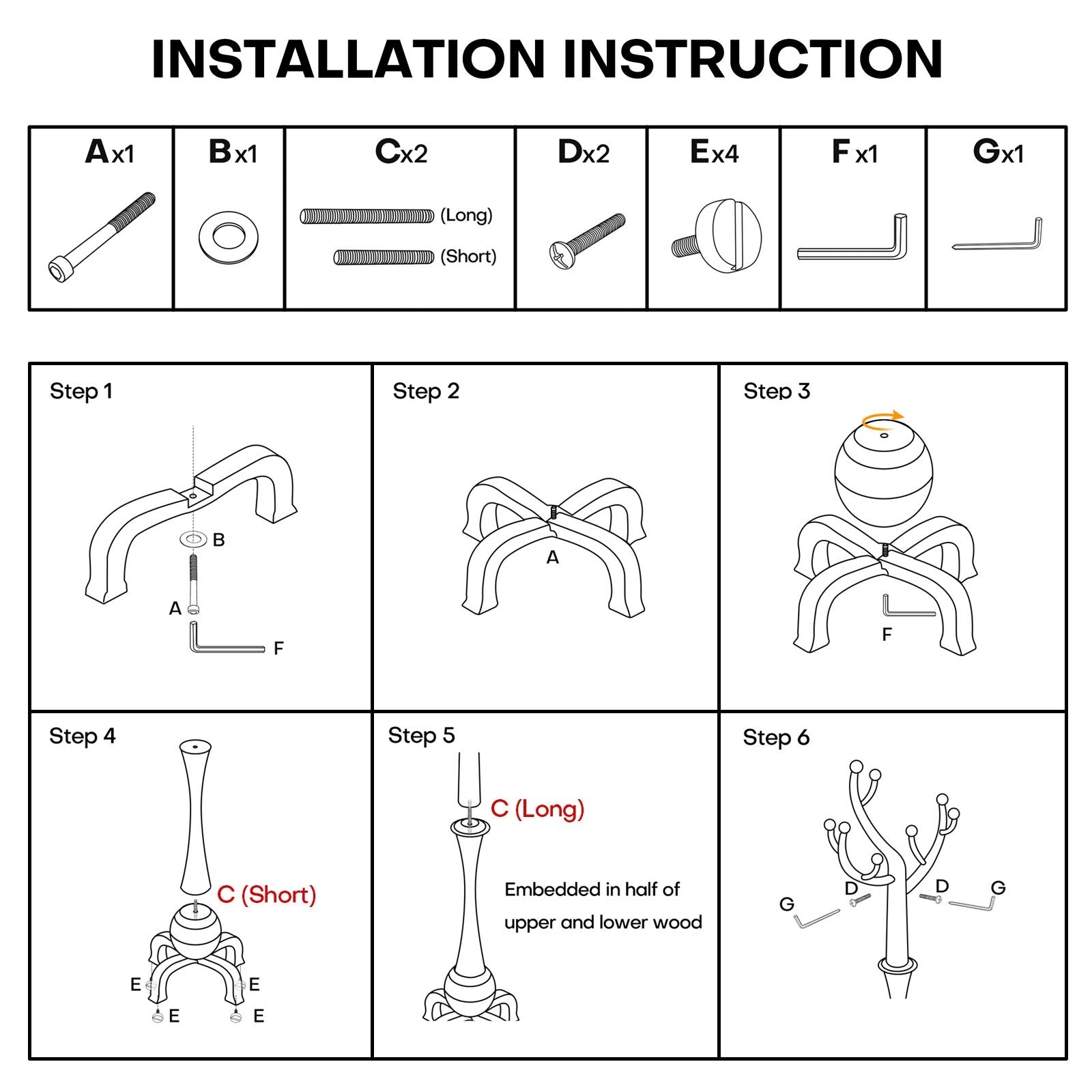 Package includes:1 x Coat Rack & Hardware Pack