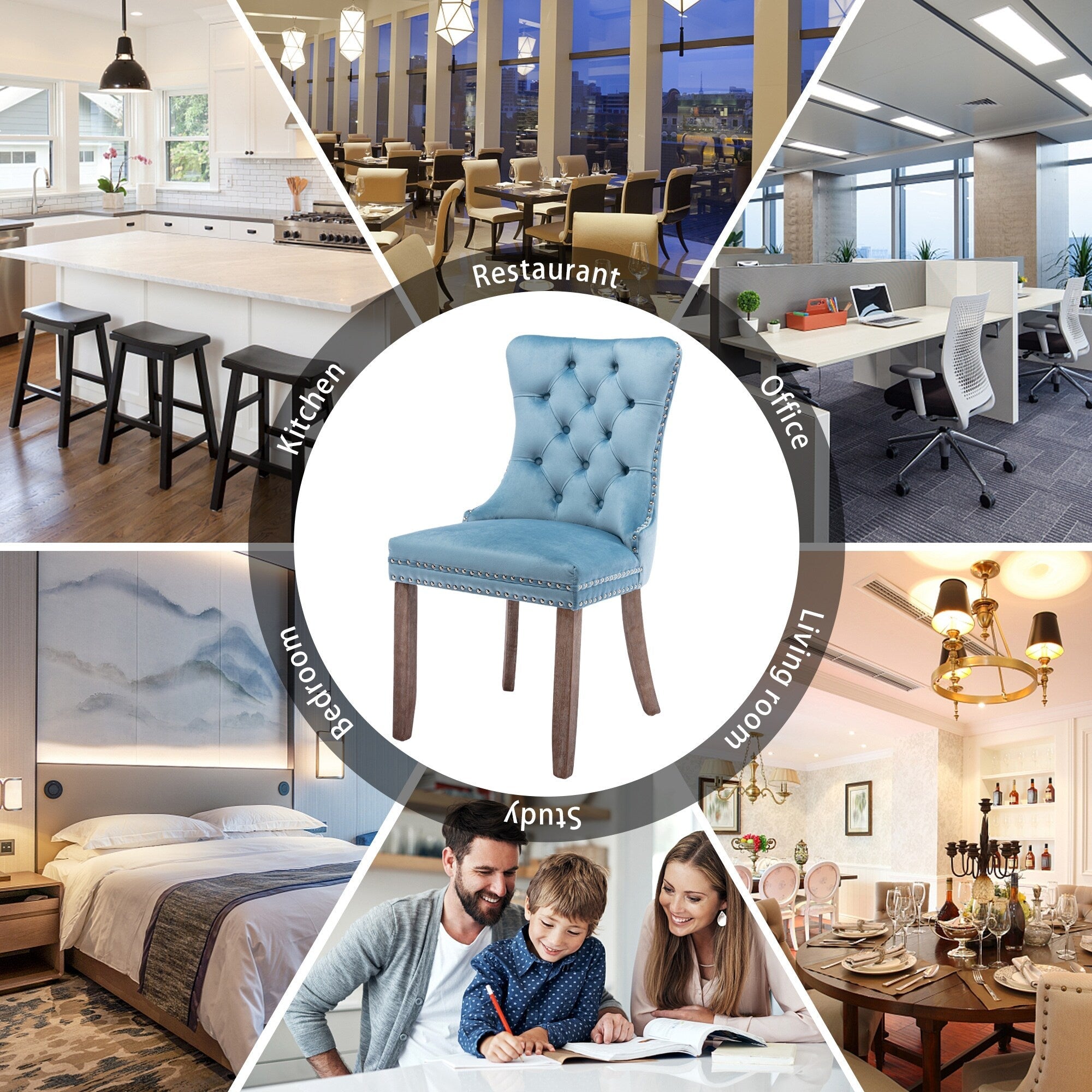 Upholstered Tufted Velvet Dining Chair with Solid Wood Legs Set of 6