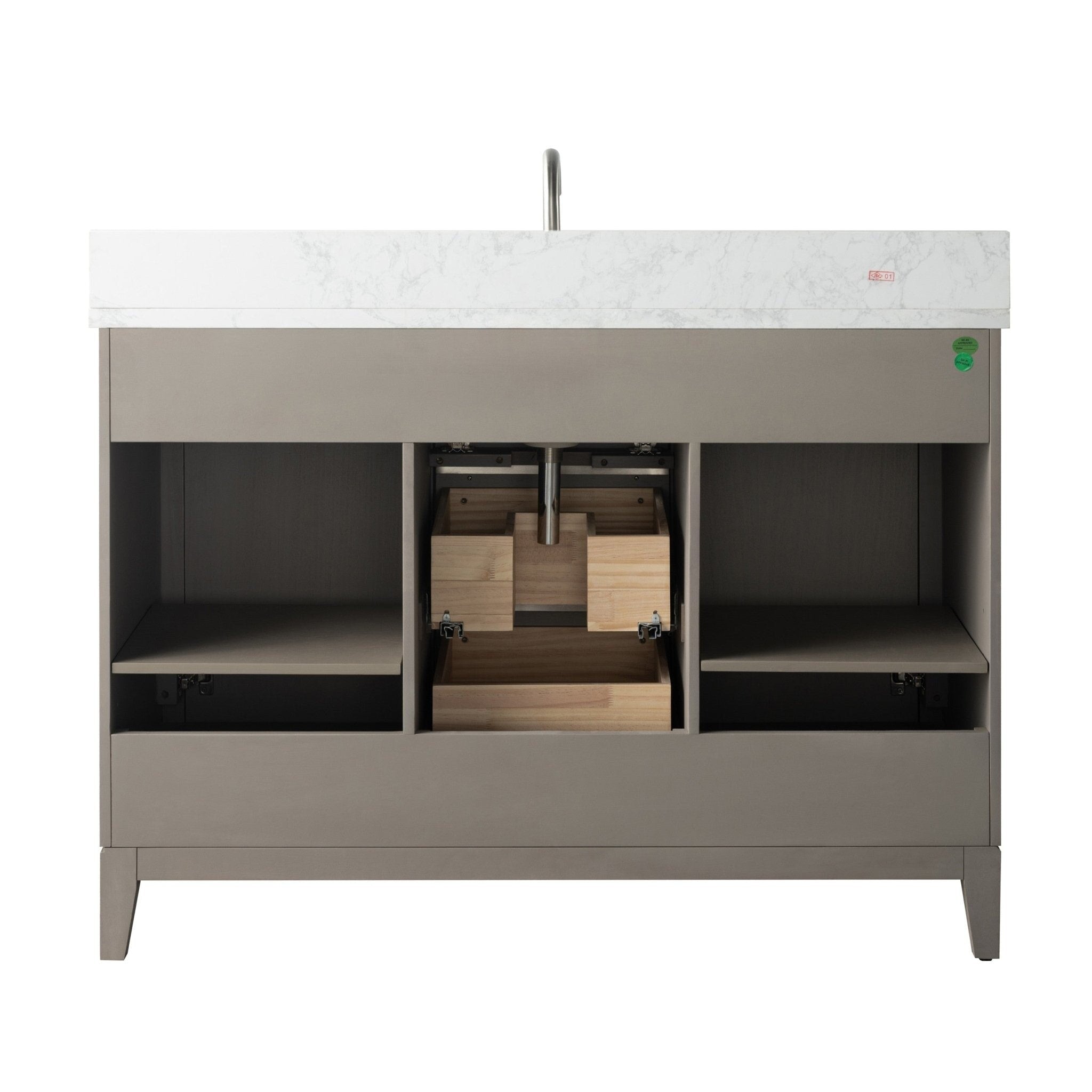 Vanity Art introducing the premium poplar wood bath vanity with sink. It is the perfect blend of functionality and style for your home. This essential piece offers generous storage space, featuring a Flip Down Tray, adjustable shelves, and drawers to keep your belongings organized and easily accessible. Crafted with convenience in mind, our sink cabinet boasts a sleek ariston engineered marble countertop that not only adds a touch of elegance but is also a breeze to clean. The rectangular undermount sink complements the countertop, creating a seamless and eye-catching look for your bathroom. Built to last, our under-sink cabinet soft-closing doors and drawers are equipped with premium-quality hinges, ensuring smooth and reliable operation. Versatility is key - our vanity bathroom sink cabinets aren't limited to the bathroom. With its stylish design and functional features, it's the perfect fit for a kitchen cabinet with a sink.