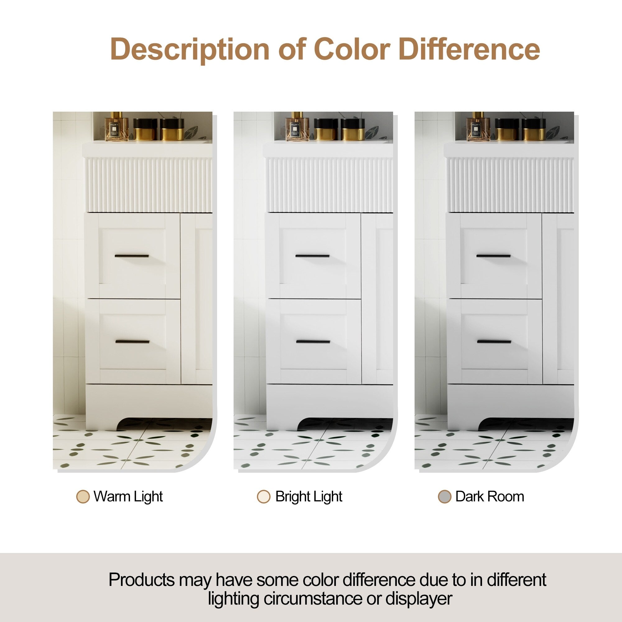 Upgrade your bathroom with this complete vanity set featuring eye-catching wavy line detailing. Available in 3 versatile sizes (30', 36', 48') and 3 on-trend colors (White, Green, Black), this freestanding vanity delivers contemporary style with exceptional storage. Premium wood construction ensures durability, while the included ceramic sink (30'/36') and lightweight SMC resin sink (48') offers easy maintenance.